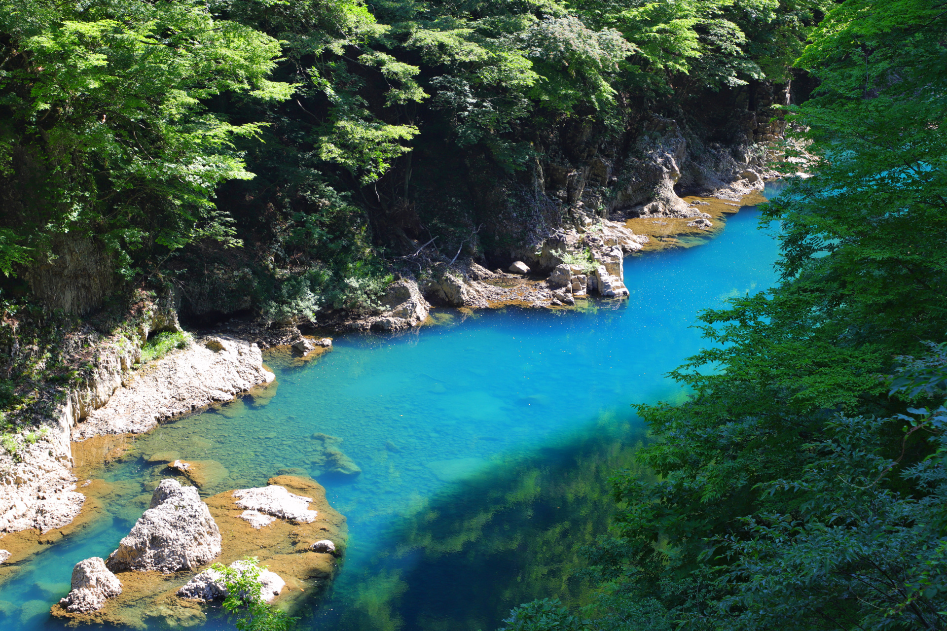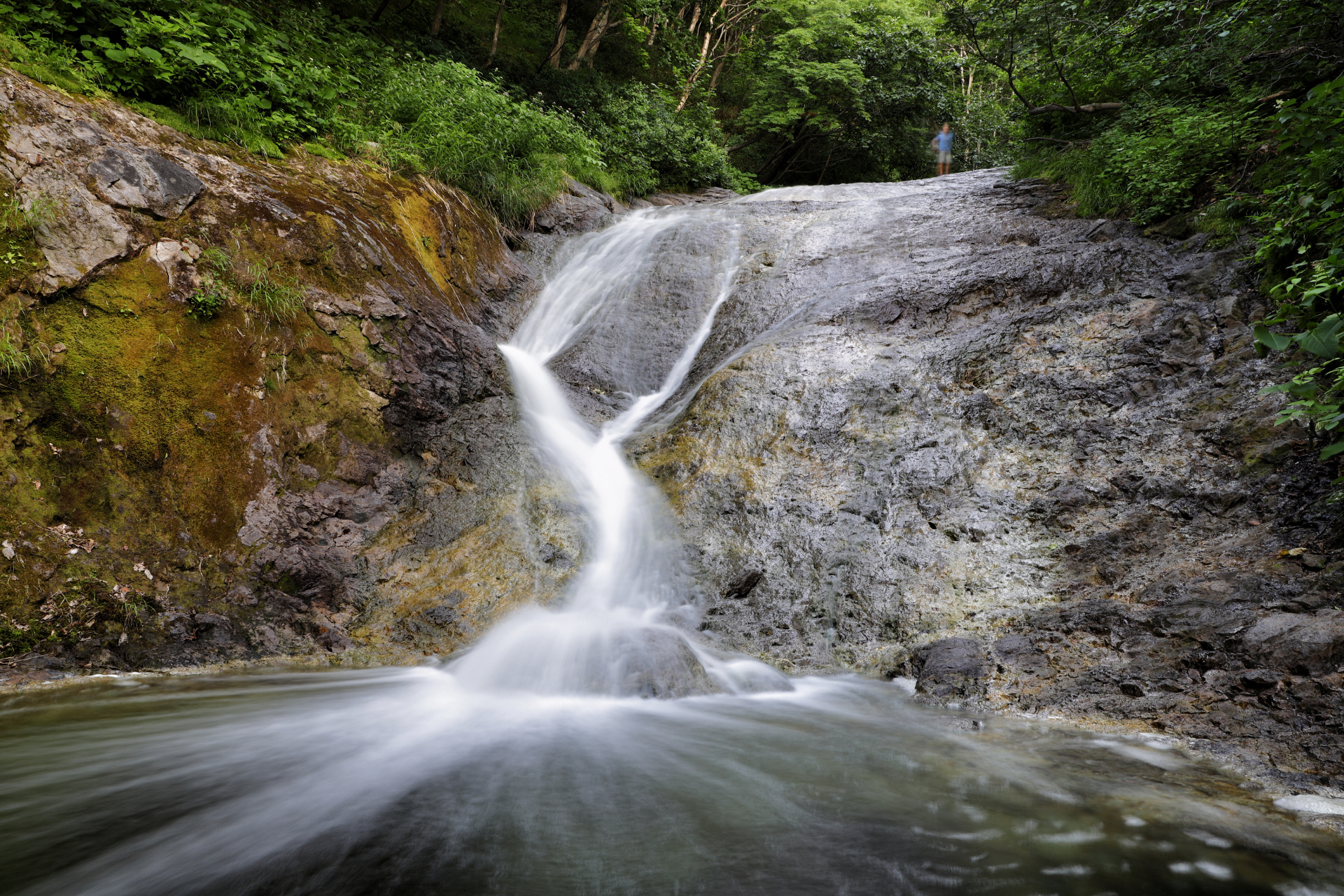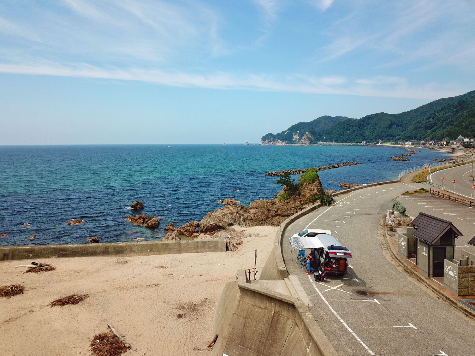 Unsern weiteren Weg nach Süden (wir geben das Auto am Donnerstag in Narita ab und fliegen am Freitag wieder nach Hamburg) wählen wir, aufgrund der mittlerweile hier herrschenden Hitze, durch die Berge. (Wir hatten bereits eine ziemlich unentspannte Nacht bei 29Grad Minimaltemperatur und wollten dies ungern wiederholen bzw. steigern.) Auch wenn es hier wunderschöne Küstenabschnitte gibt, erfreuen wir uns lieber an Schluchten und kalten Badeflüssen. Wir kommen vorbei an den Überbleibseln eines Erdbebens (eingestürzte Brücke und zerbrochene Straße), zapfen immer gerne Wasser an der ein oder anderen frischen Bergquelle und suchen uns kühle Plätzchen bevorzugt an einem See (zum Baden) oder am Fluss.
