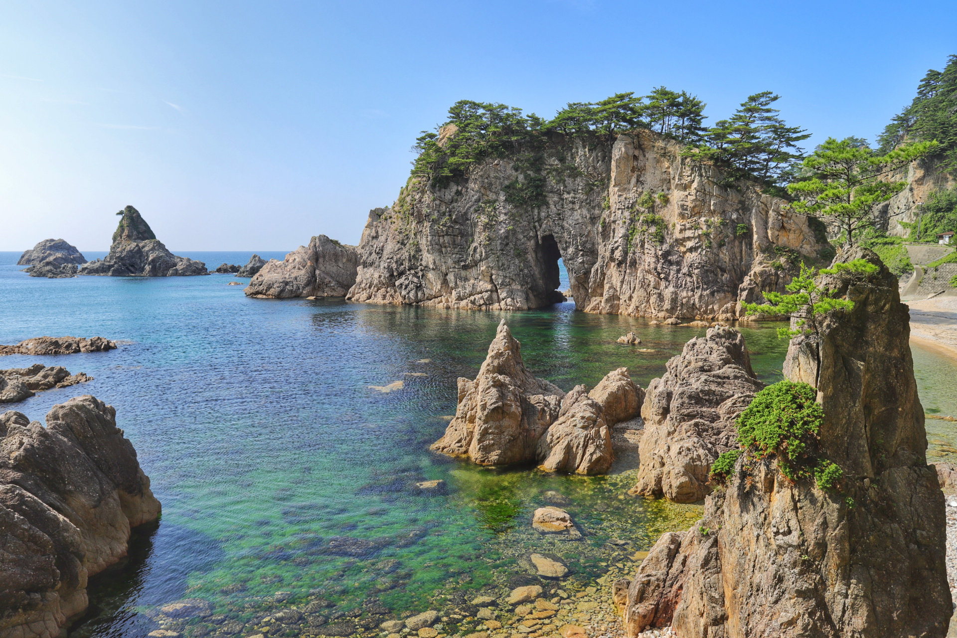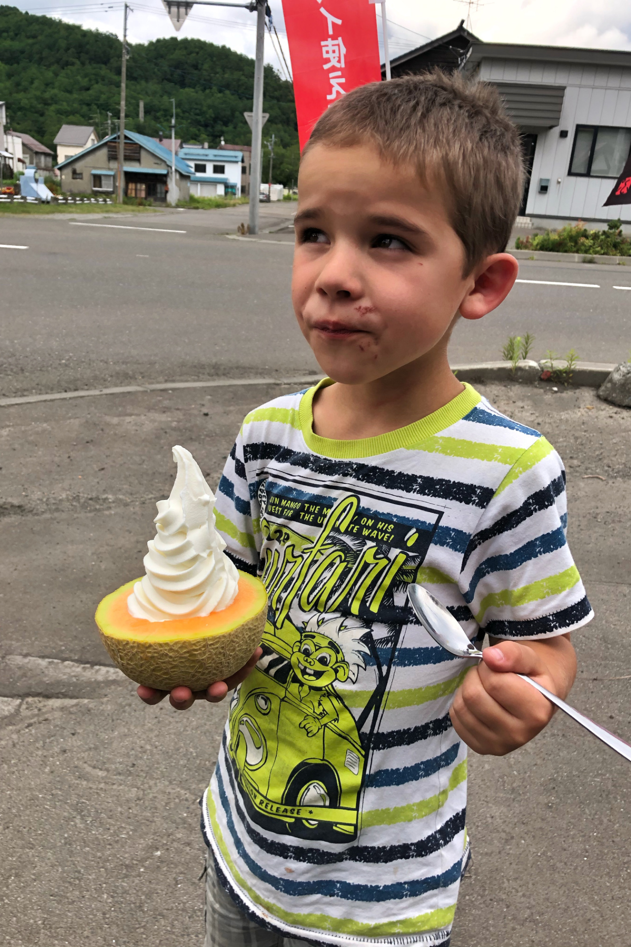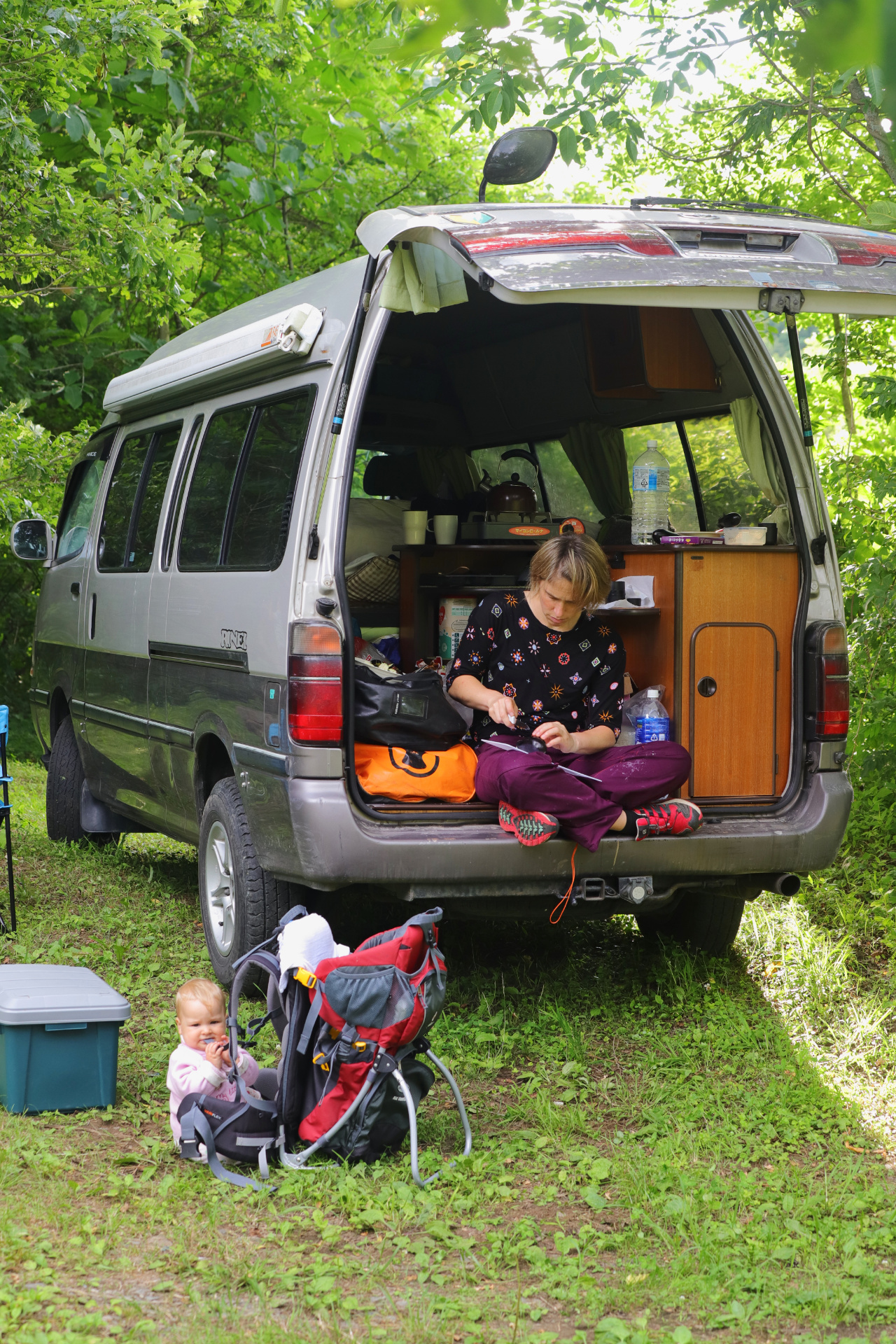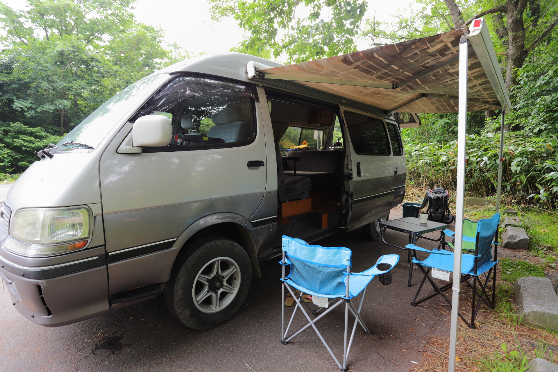 Unsern weiteren Weg nach Süden (wir geben das Auto am Donnerstag in Narita ab und fliegen am Freitag wieder nach Hamburg) wählen wir, aufgrund der mittlerweile hier herrschenden Hitze, durch die Berge. (Wir hatten bereits eine ziemlich unentspannte Nacht bei 29Grad Minimaltemperatur und wollten dies ungern wiederholen bzw. steigern.) Auch wenn es hier wunderschöne Küstenabschnitte gibt, erfreuen wir uns lieber an Schluchten und kalten Badeflüssen. Wir kommen vorbei an den Überbleibseln eines Erdbebens (eingestürzte Brücke und zerbrochene Straße), zapfen immer gerne Wasser an der ein oder anderen frischen Bergquelle und suchen uns kühle Plätzchen bevorzugt an einem See (zum Baden) oder am Fluss.