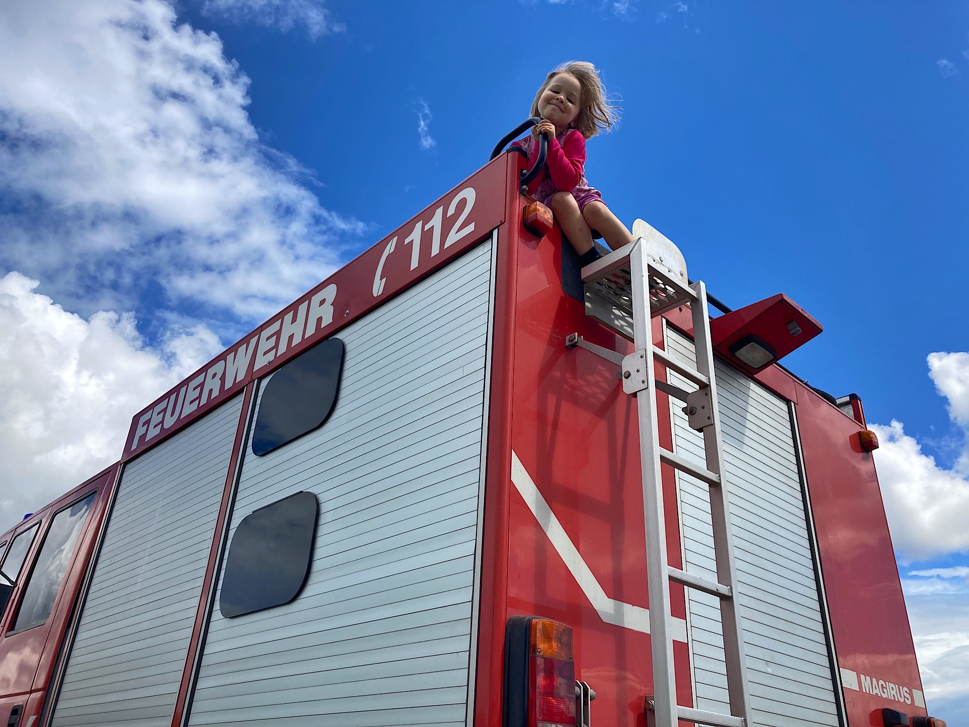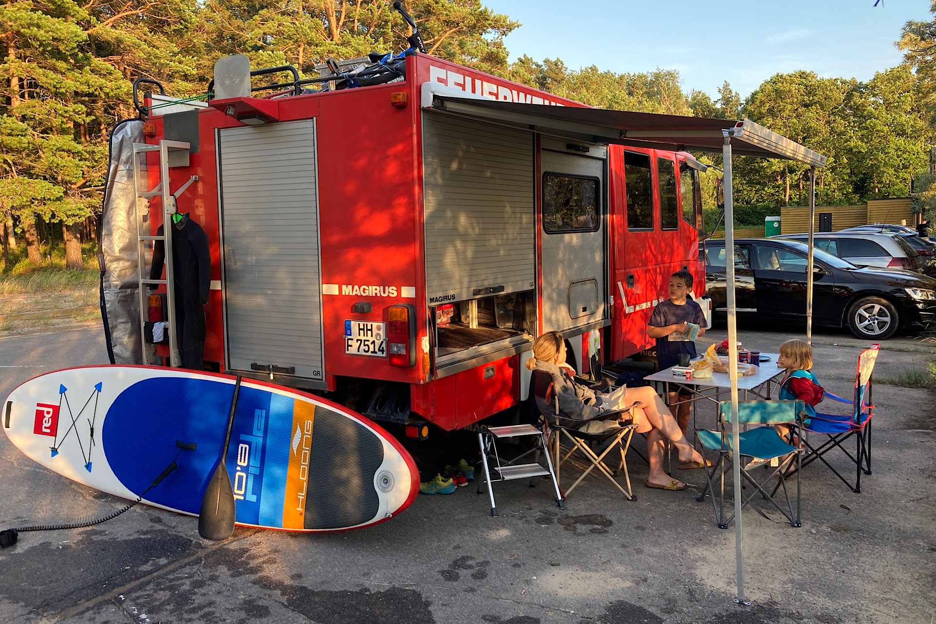 Abends fuhren wir gleich noch eine Ecke weiter bis nach Peenemünde, wo wir direkt hinter dem historisch-technischen Museum übernachten konnten. Abendessen gab es oben auf unserem Dach. Während wir aßen, hörten wir Musik spielen und stellten fest, dass es am benachbarten Hafen ein Wikinger-Fest mit Livemusik und Feuershow gab. Also pilgerten wir da nach dem Essen noch hin.
