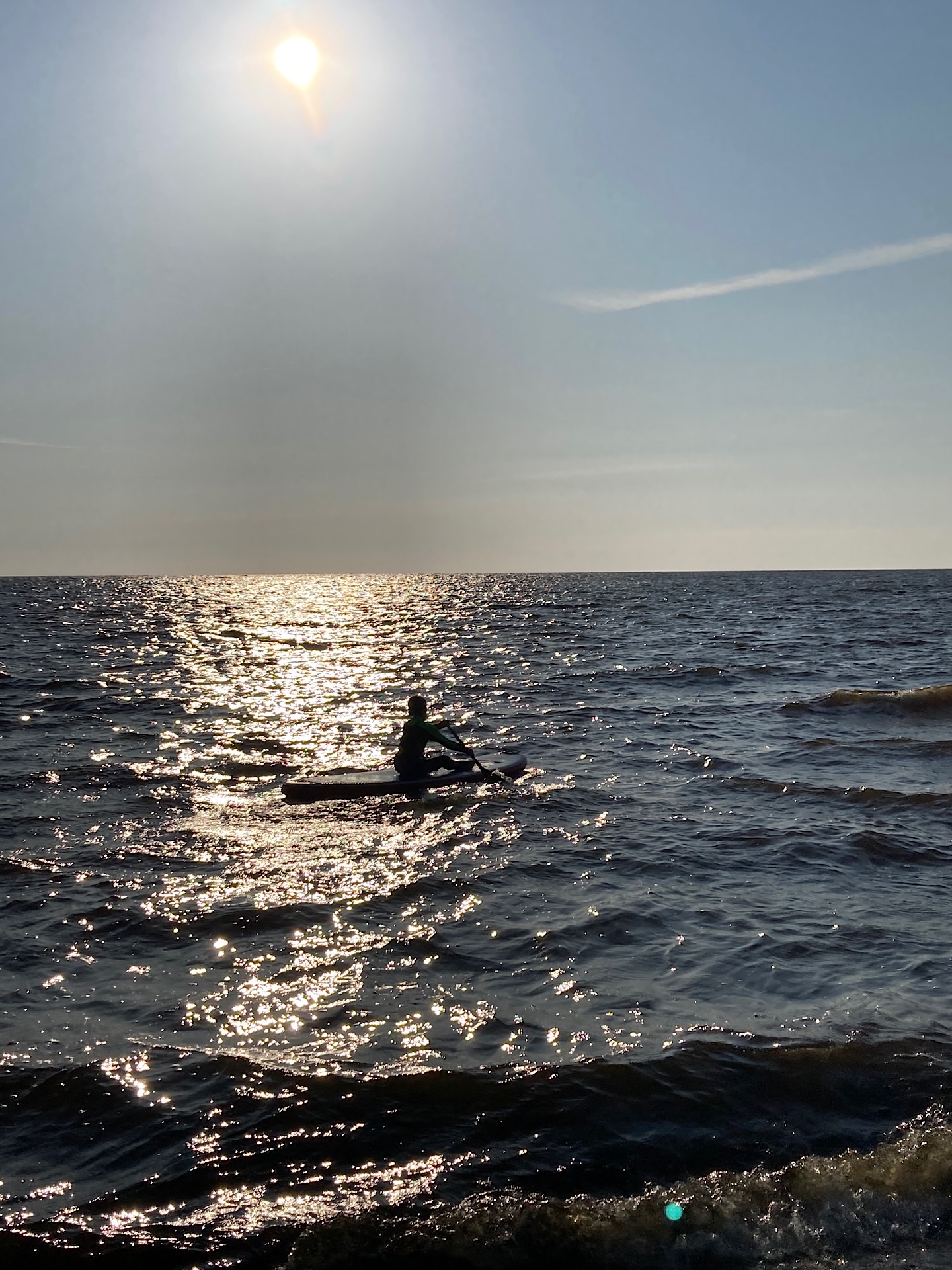 Am nächsten Morgen war zu wenig Wind zum Kiten, aber genug um unser kurz vor Abfahrt erworbenes Wing mit dem SUP auszuprobieren. Mit ein bisschen Geduld, Fingerspitzengefühl und manchmal Paddel-Unterstützung kamen wir sogar meist wieder zum Anlegesteg zurück.