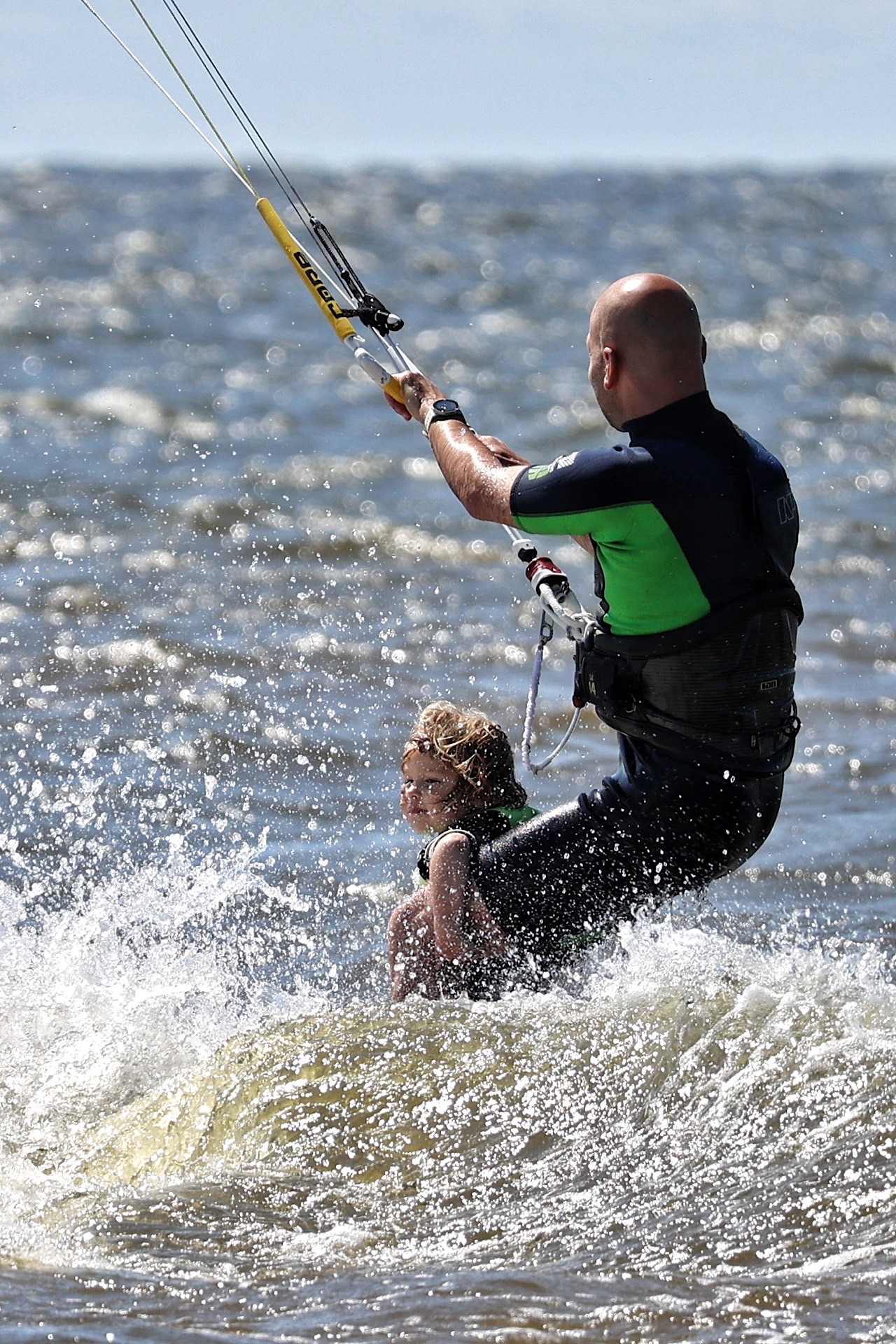 Weiter ging es Richtung frisches Haff. Nach einem kleinen Stop in der Nähe von Danzig fanden wir bei Elblag einen schönen Platz am Wasser – wieder mit viel Wind und schön flachem Wasser. Lasse kommt schon richtig ins Fahren!