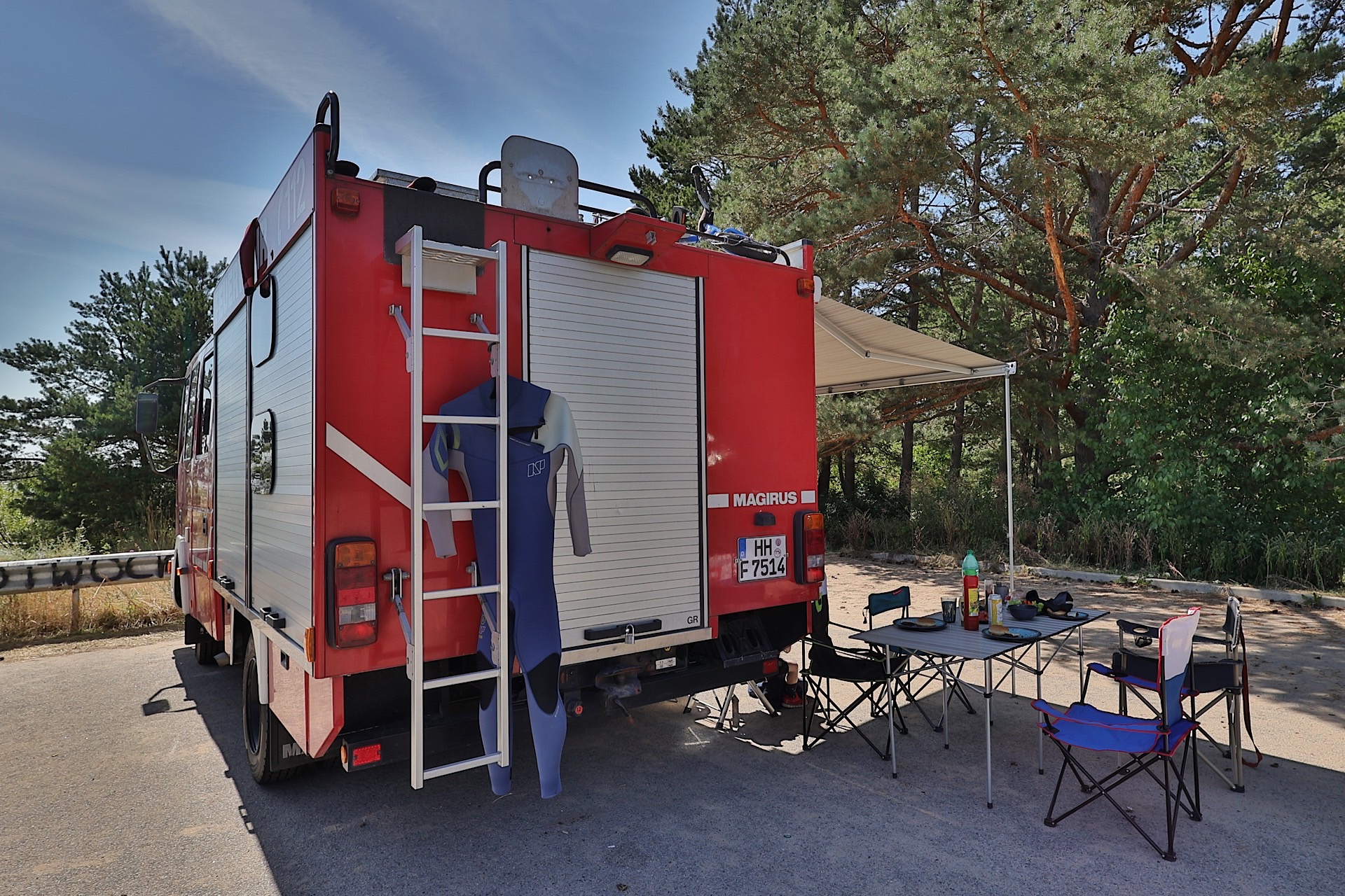 Weiter ging es zum Slowinzischen Nationalpark, wo wir bei starkem Westwind am Leba-See einen tollen Kitespot fanden, an dem wir nach einer Abend-Session auch gleich übernachten konnten. Die Mücken und Bremsen waren zwar etwas nervig, aber flogen nicht so hoch, so dass wir wieder oben auf dem Dach Abendessen machten. Am nächsten Morgen war der Wind immer noch da, so dass wir gleich weitermachten.