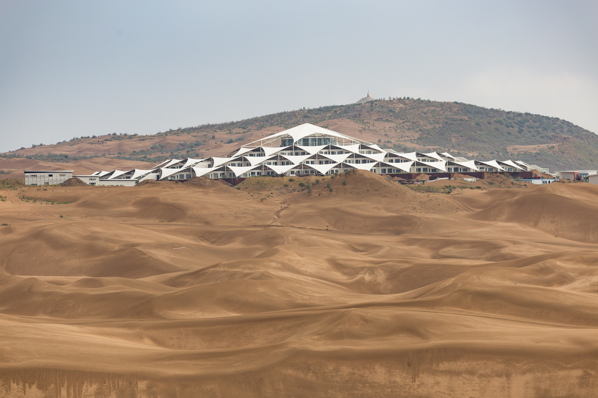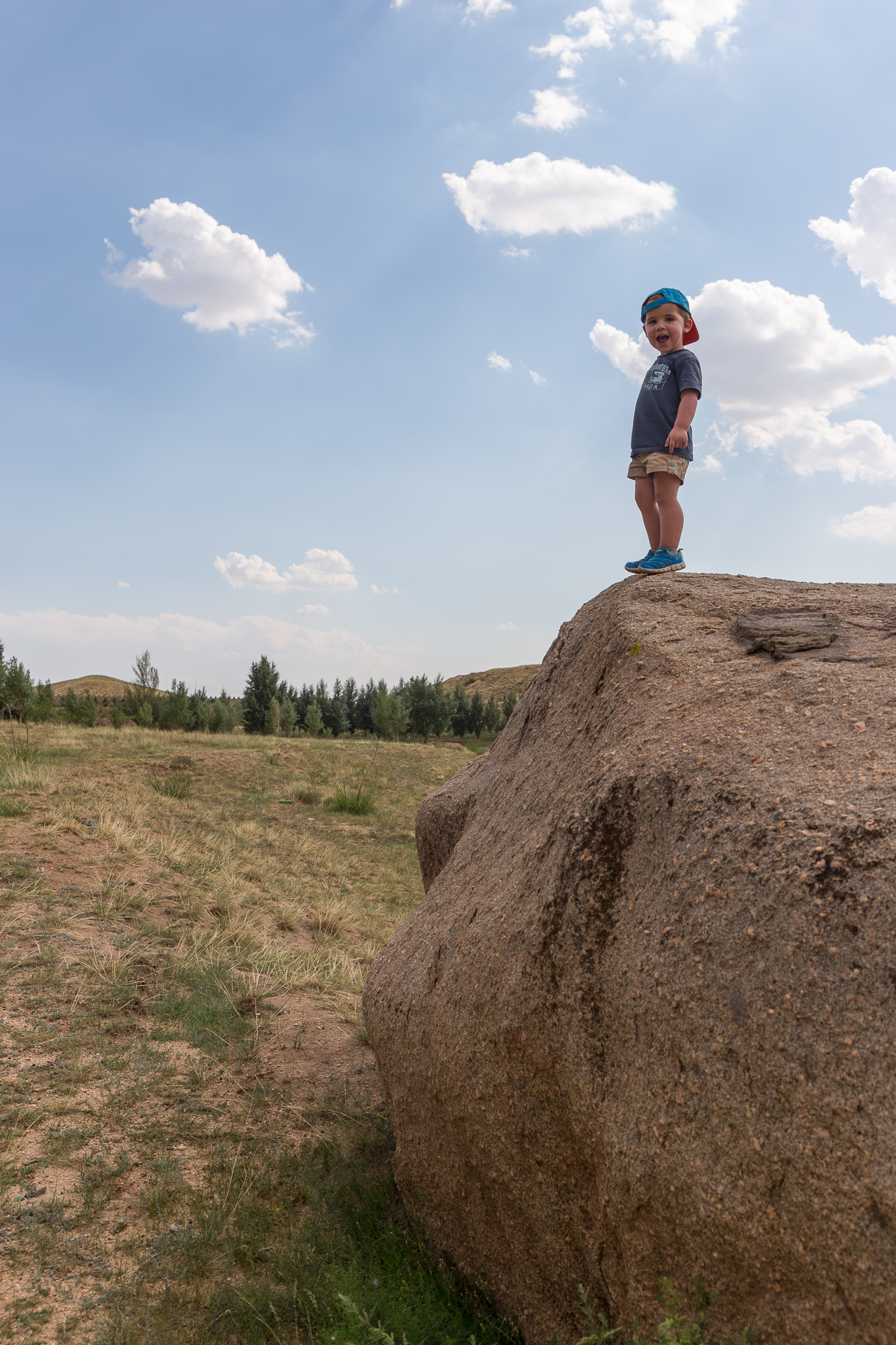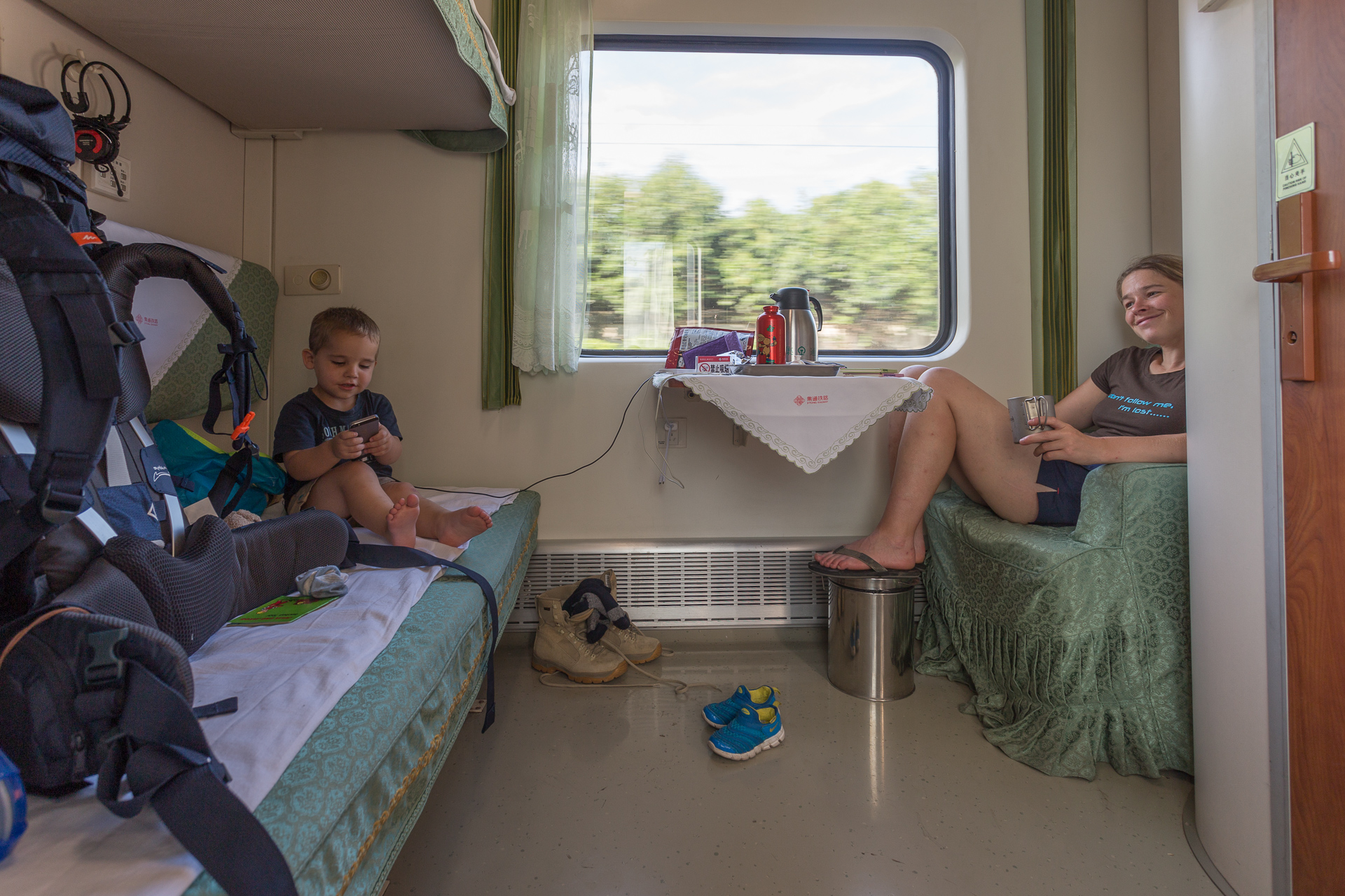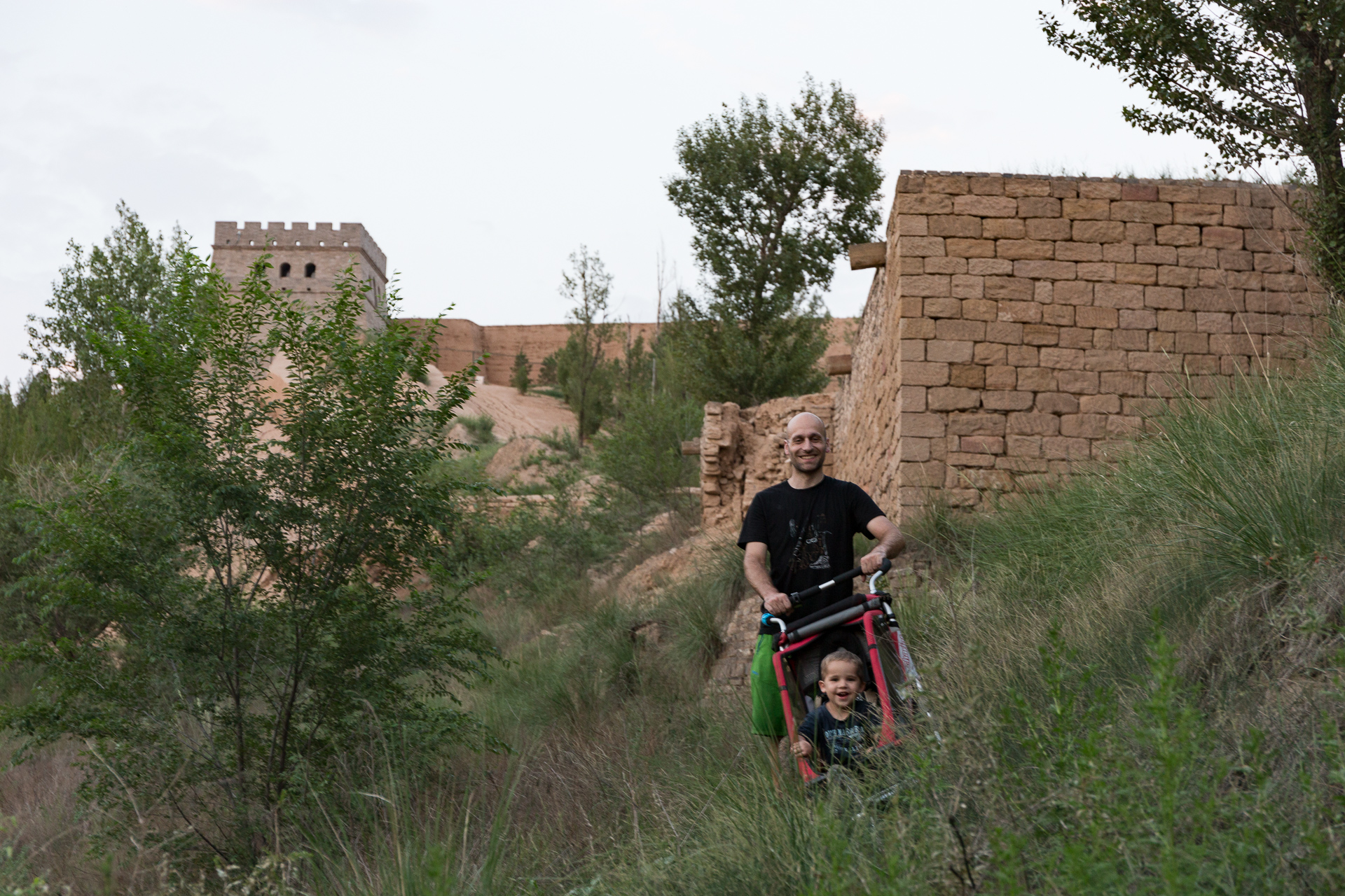 Im August waren wir erst einmal in der inneren Mongolei – dem zu China gehörigen Teil der Mongolei. Aufgrund der Entfernungen wollten wir unsere Fahrräder mitnehmen und Lasse im wohlbekannten Anhänger hinter uns herziehen. Leider ist der hier gekaufte Gepäckanhänger bereits am Tor unserer Hausanlage gebrochen, so dass wir spontan umplanen mussten. Da wir sicherheitshalber recht früh dran waren, blieb genug Zeit, uns schnell zwei Rucksäcke zu kaufen, das Gepäck umzupacken und mit dem Taxi zum Bahnhof zu fahren. Für die 20h Zugfahrt hatten wir uns das super super Luxusabteil gegönnt (zwei Betten übereinander, Sessel und eigenes Bad). Nach einer rumpeligen aber doch einigermaßen entspannten Fahrt haben wir uns als erstes in Yulin Überbleibsel der Großen Mauer angeschaut bevor wir weiter nach Norden in die Wüstenlandschaft gefahren sind. Die Chinesen haben wie überall, wo es landschaftlich interessant wird, ein Touristen-Zentrum erbaut – natürlich ist der Wüstenstreifen auch voll erschlossen und vermarktet – mit Gondel, Sandfahrzeugen, Sandrutschen, Kamelreiten, Schwimmbad in der Wüste etc. Wir haben uns das Spektakel von weitem angeschaut, bevorzugten dann aber doch ein paar Kilometer weiter zu wandern um ungestört ein paar Dünen zu besteigen und im Sand zu spielen.Xiangshawan