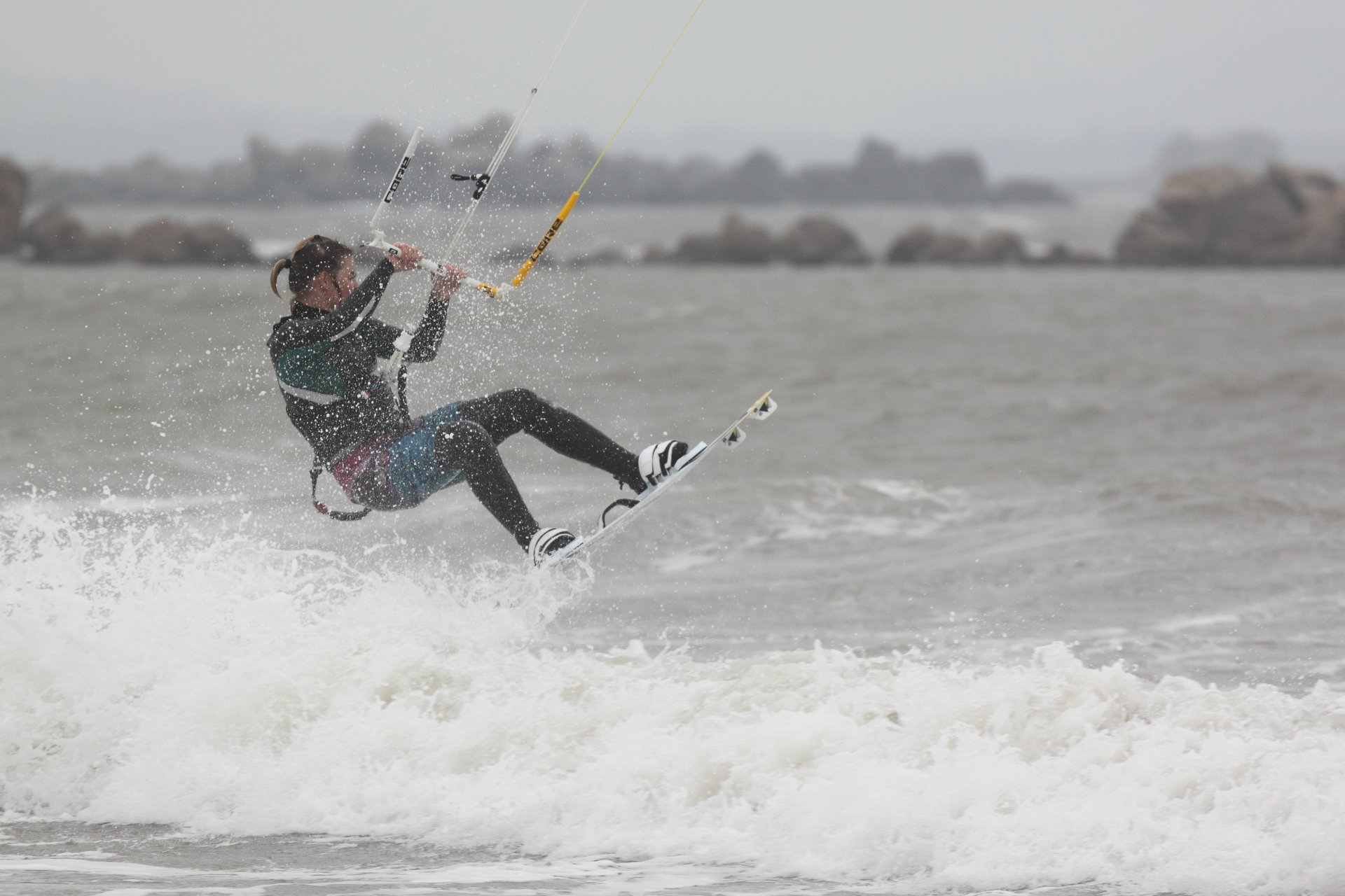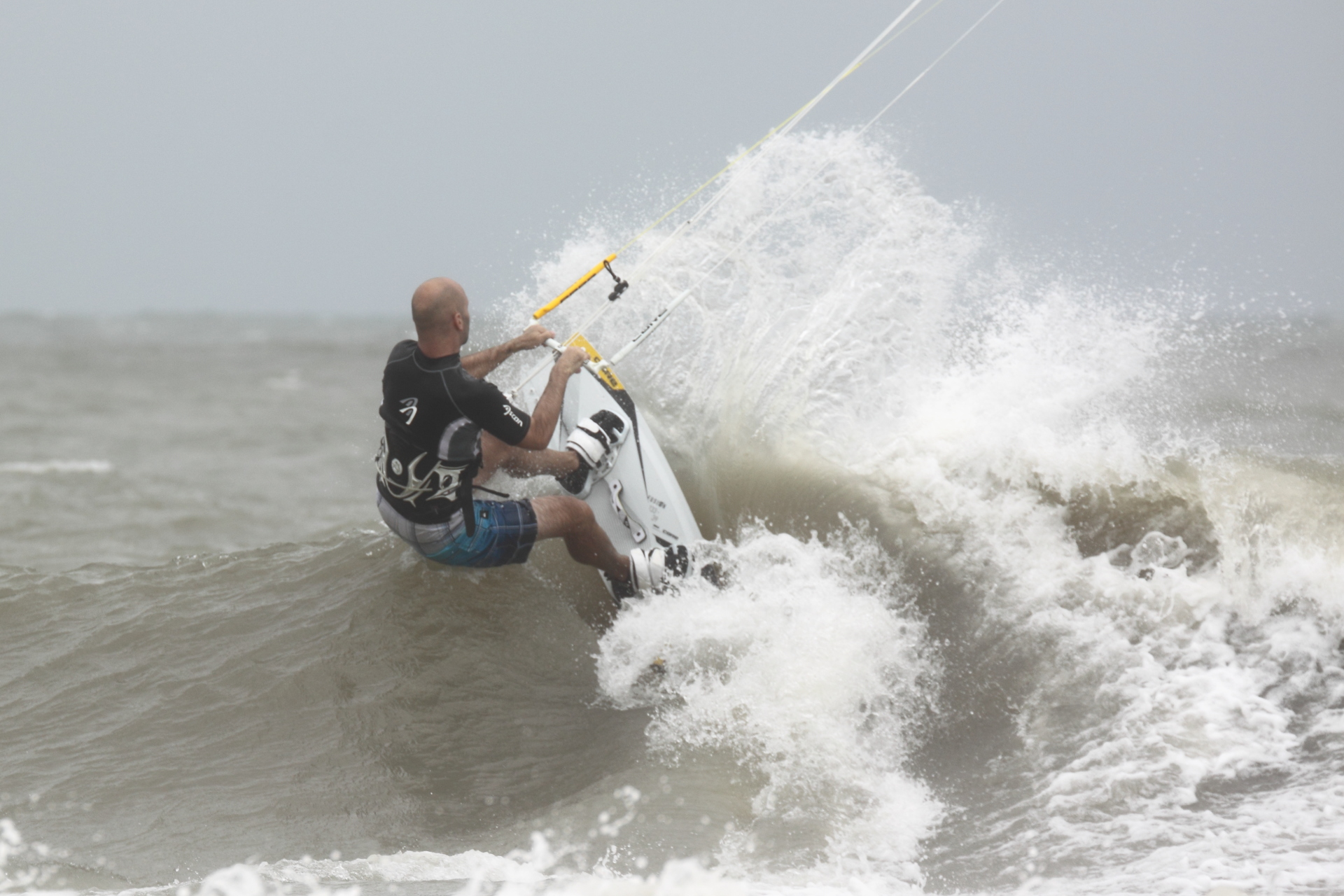 Nicht jedoch, ohne dabei fast ein Auto im Meer zu verlieren, das beim Transport eines Jetski-Trailers von einer Welle erfasst wurde: