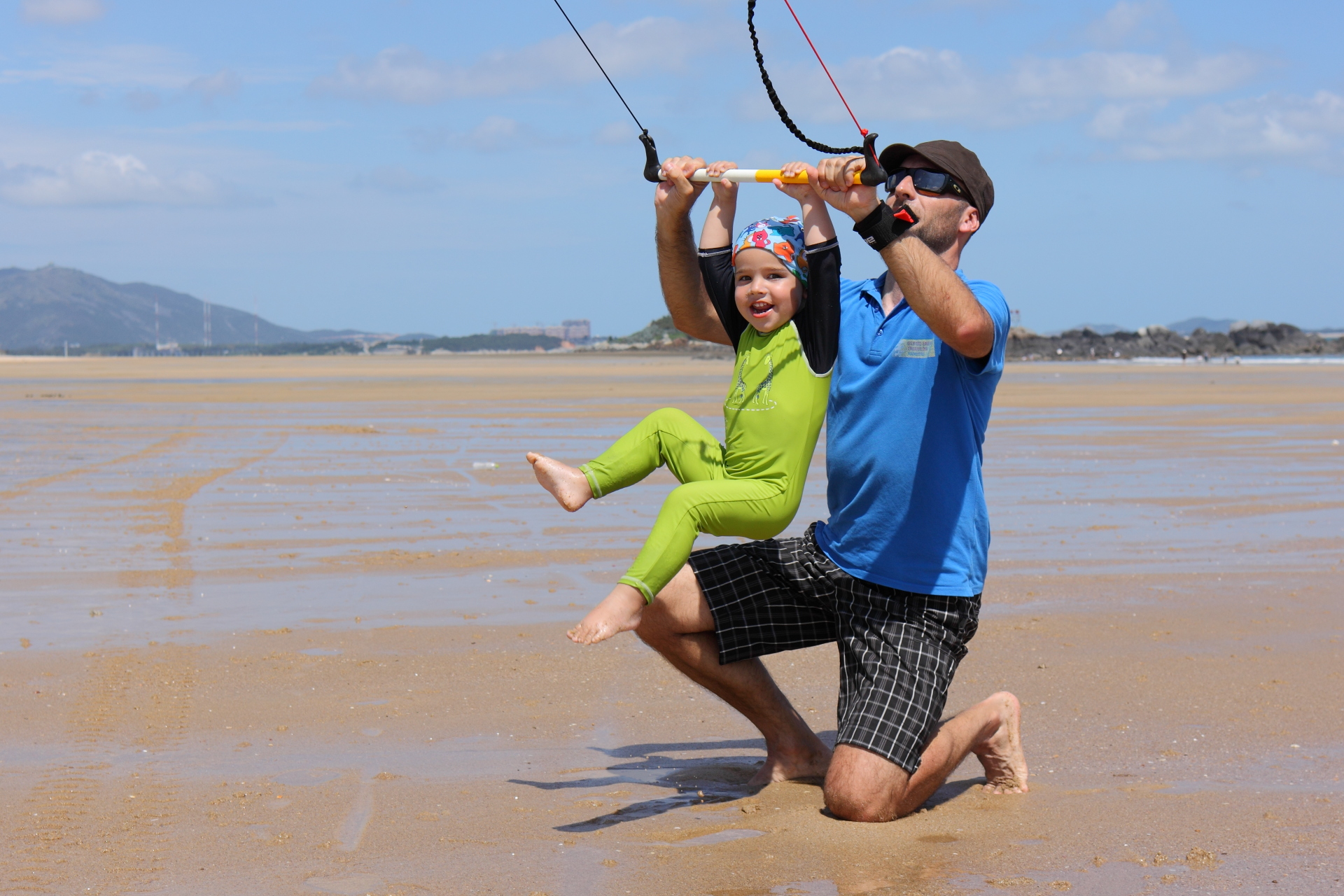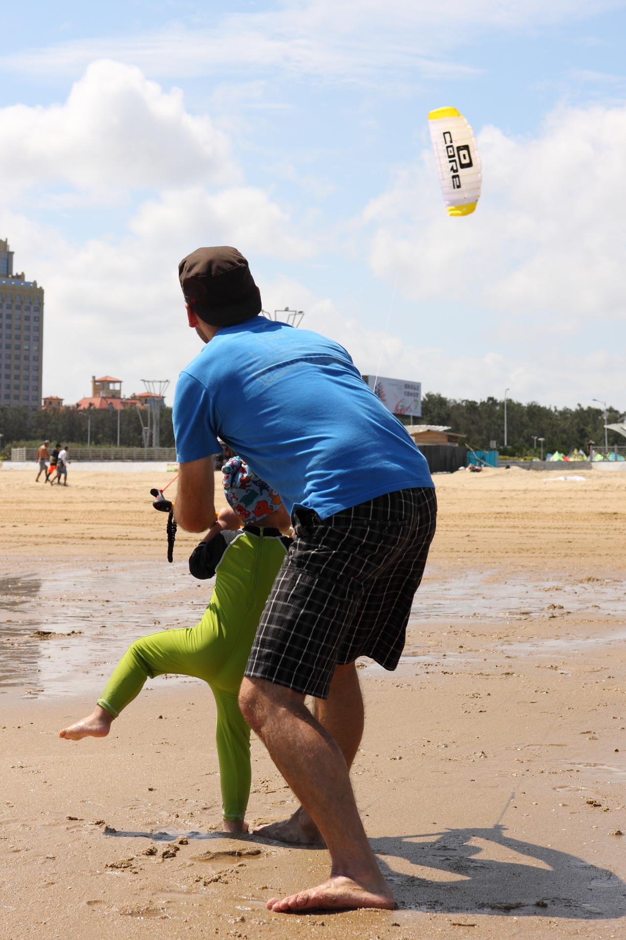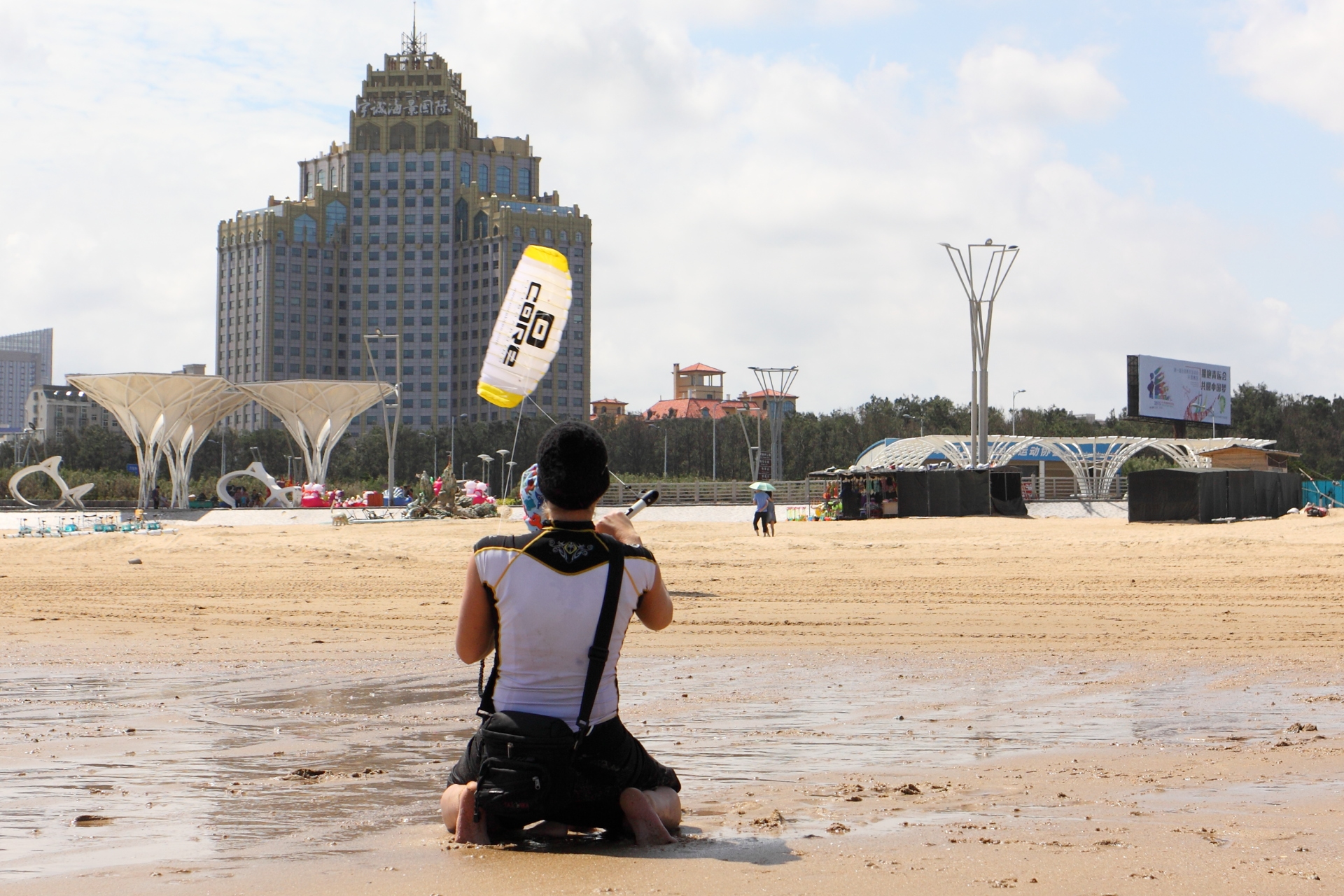 Der Strand war in den ersten Tagen gerammelt voll mit chinesischen Urlaubern, die mit Motor-Buggys auch gerne mal über des einen oder anderen Kiters Leinen brausten. Vor Ort gab es auch eine Kiteschule, und da eine Woche später chinesische Meisterschaften im Kitesurfen anstanden, war auch auf dem Wasser immer genug los.