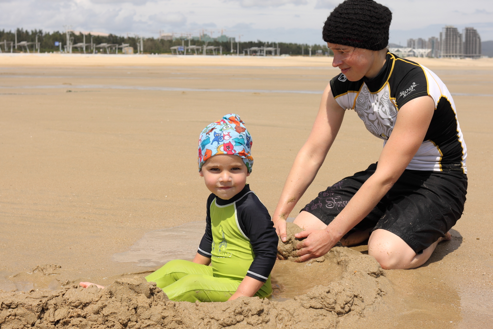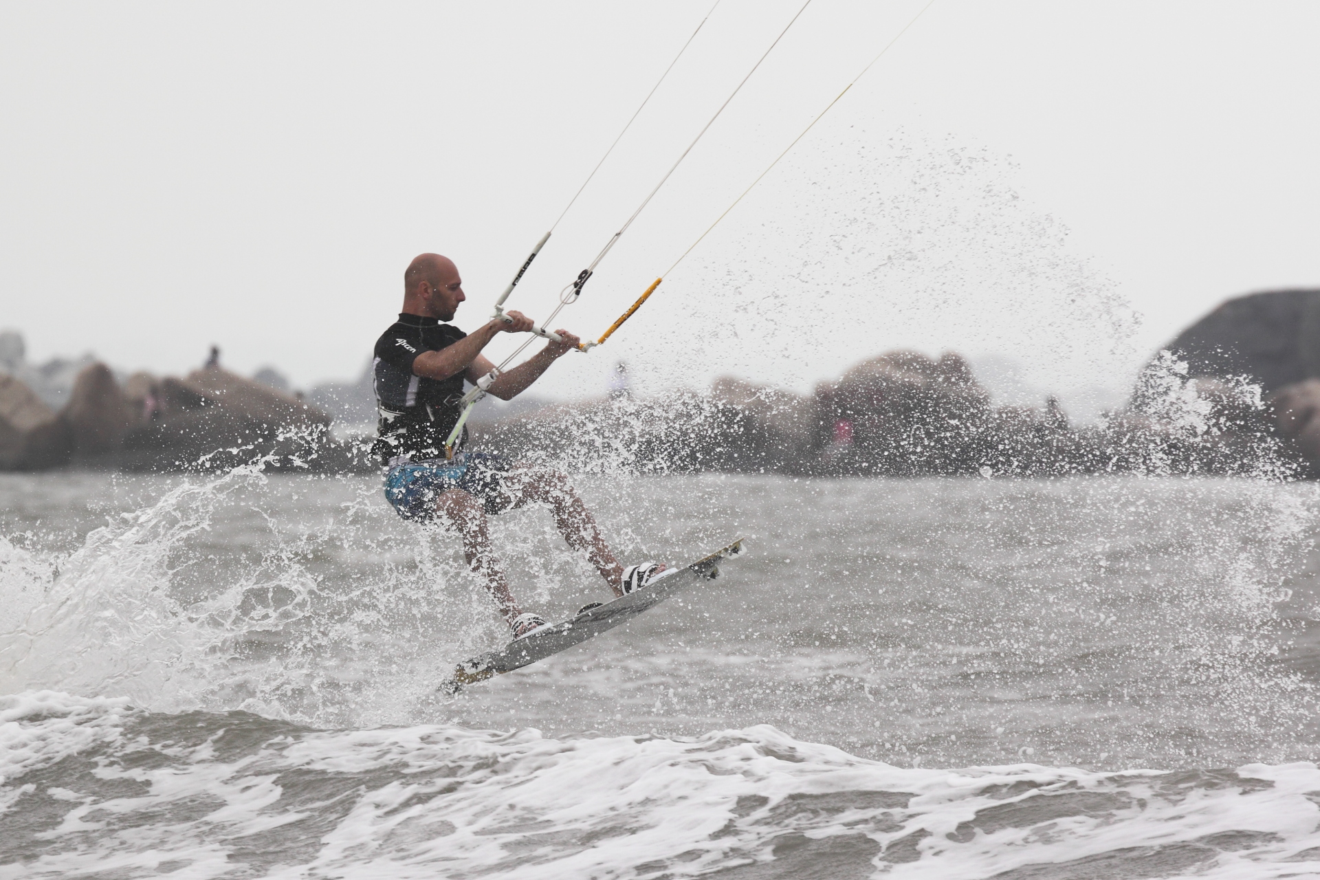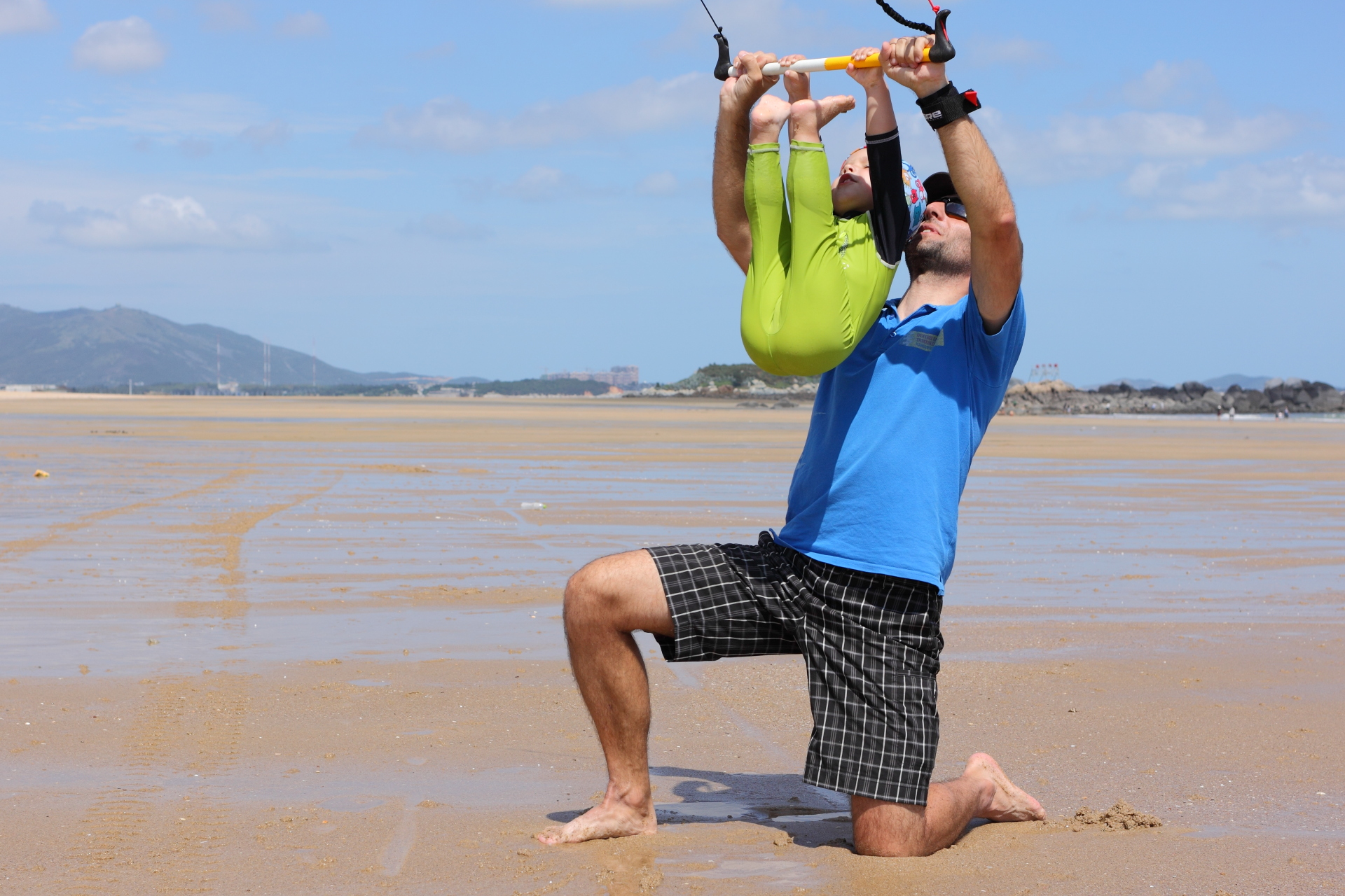 Der Strand war in den ersten Tagen gerammelt voll mit chinesischen Urlaubern, die mit Motor-Buggys auch gerne mal über des einen oder anderen Kiters Leinen brausten. Vor Ort gab es auch eine Kiteschule, und da eine Woche später chinesische Meisterschaften im Kitesurfen anstanden, war auch auf dem Wasser immer genug los.