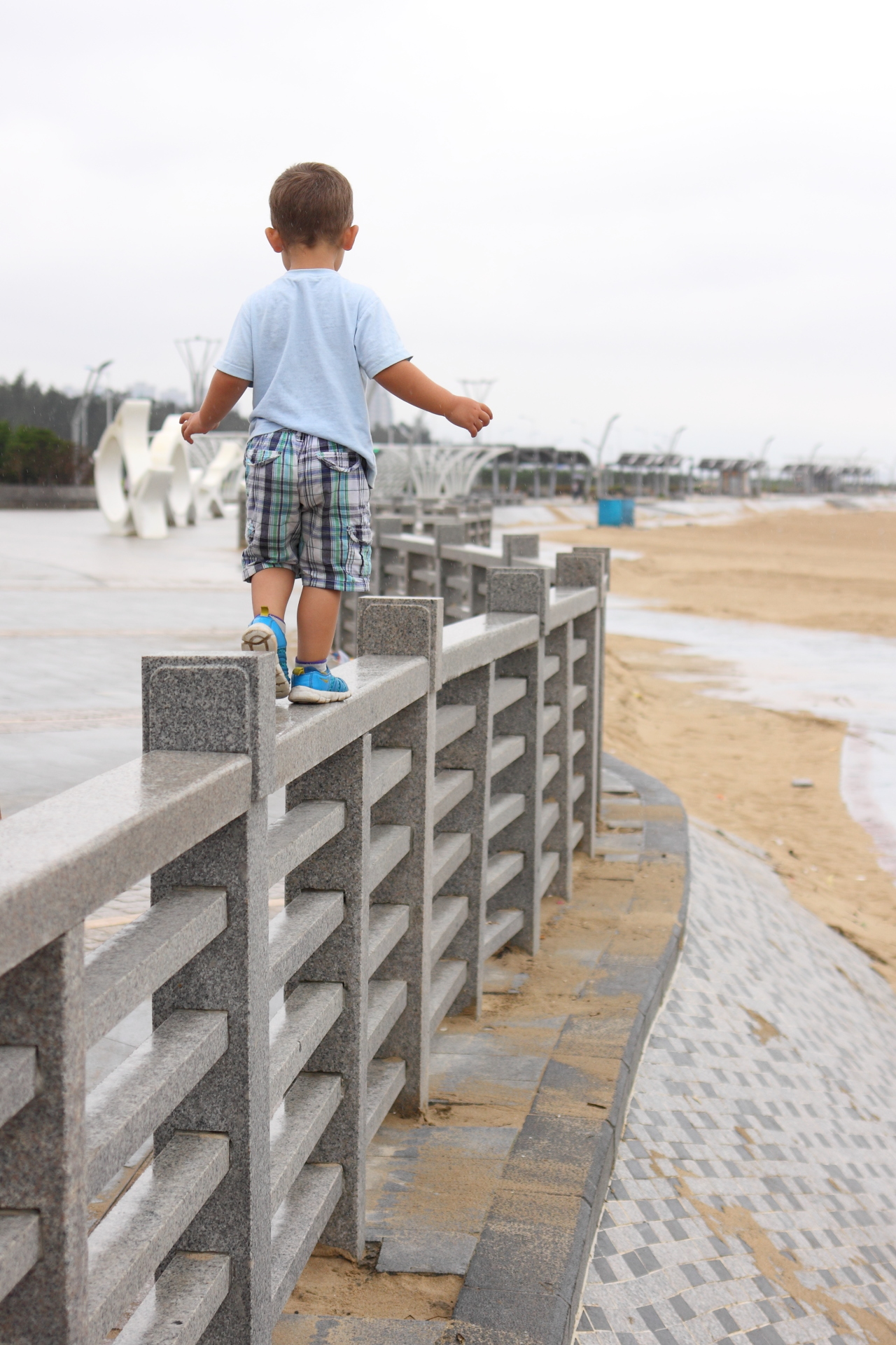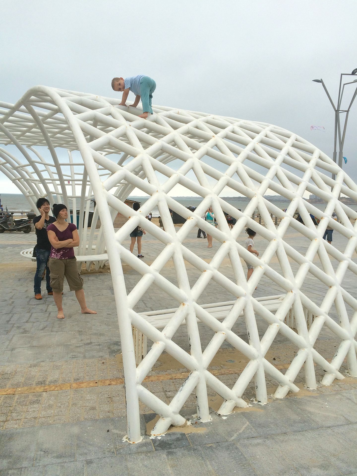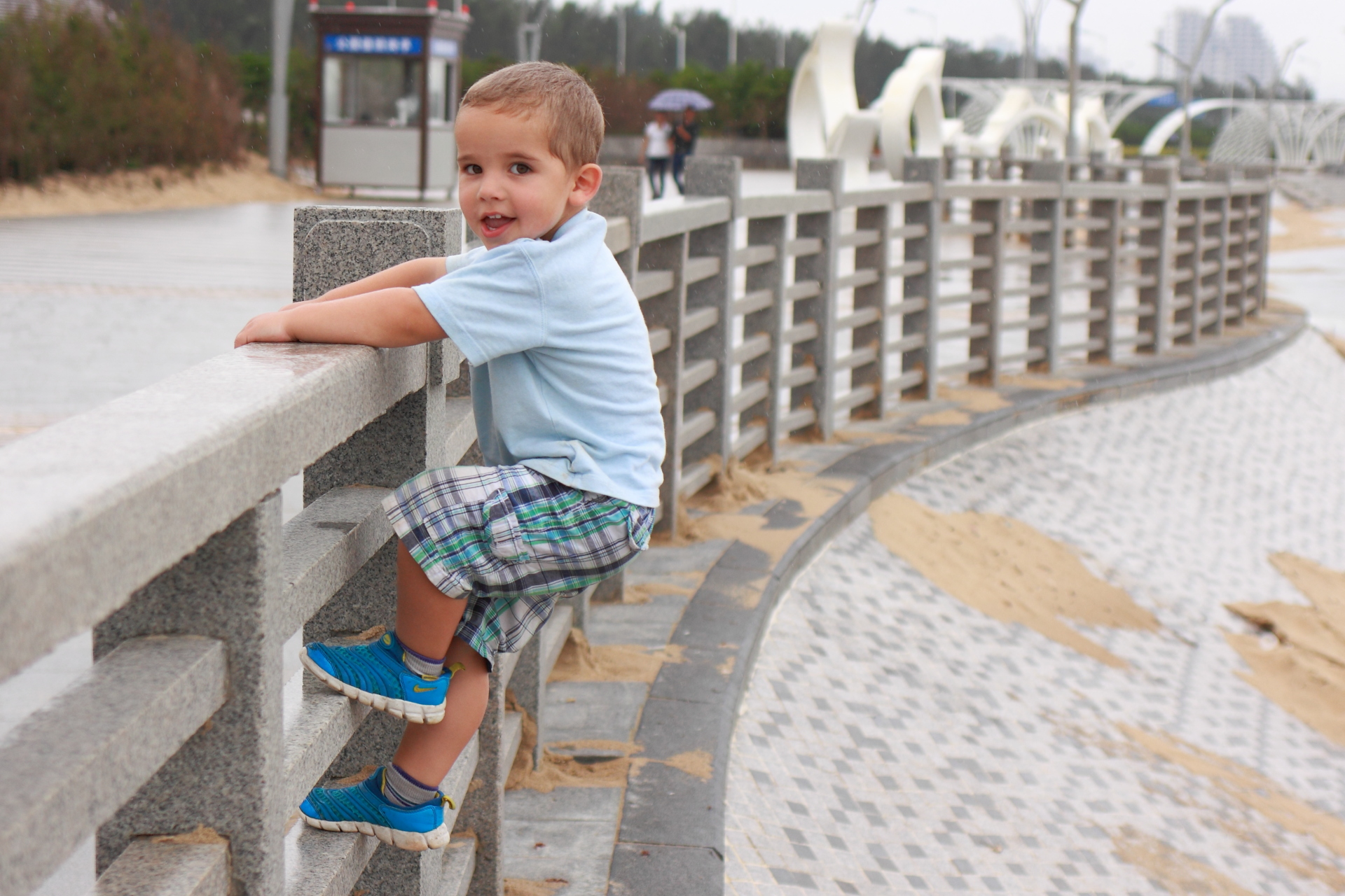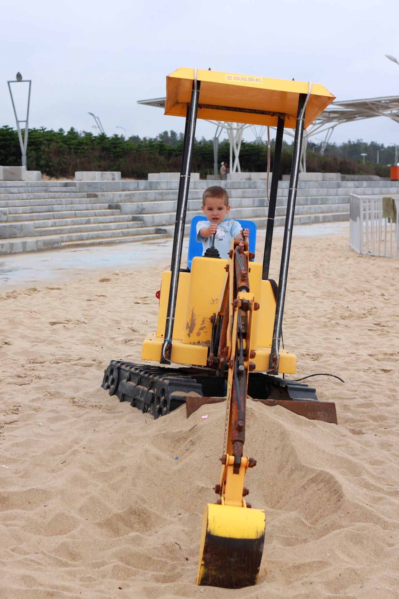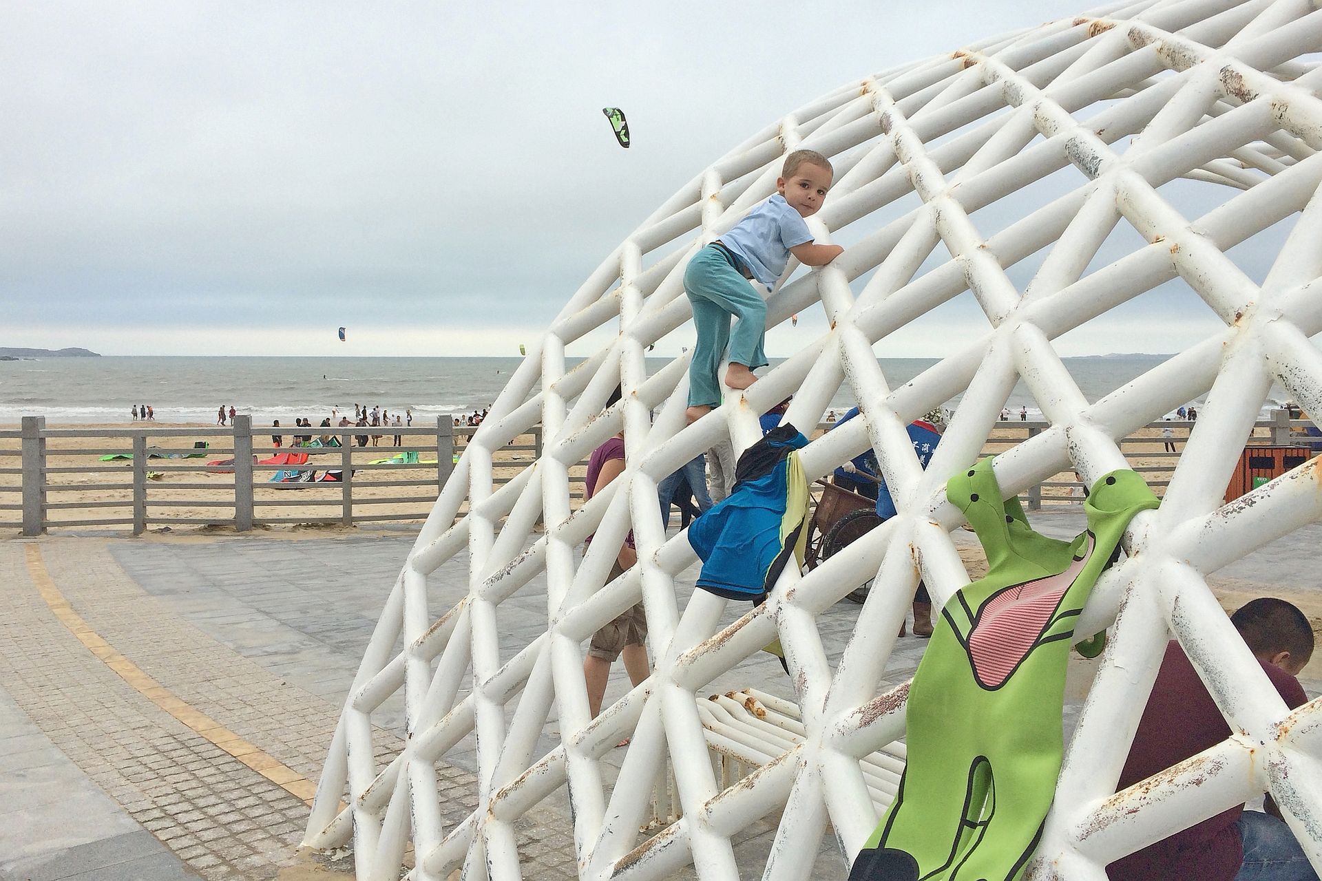 Lasse spielte auch ausgiebig. Am Strand im Sand, auf diversen Klettergelegenheiten oder den Bezahl-Attraktionen, die nach den Feiertagen zwar offiziell geschlossen, aber dennoch zugänglich waren 😉